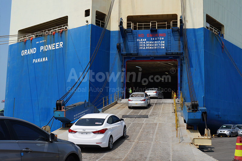 on Incheon port 5th July, lots of Korean Used cars, and Autowini B.I.S(Buy it Safely) Cars were being shipped into Ro-ro(Roll in roll out) Vessel!
