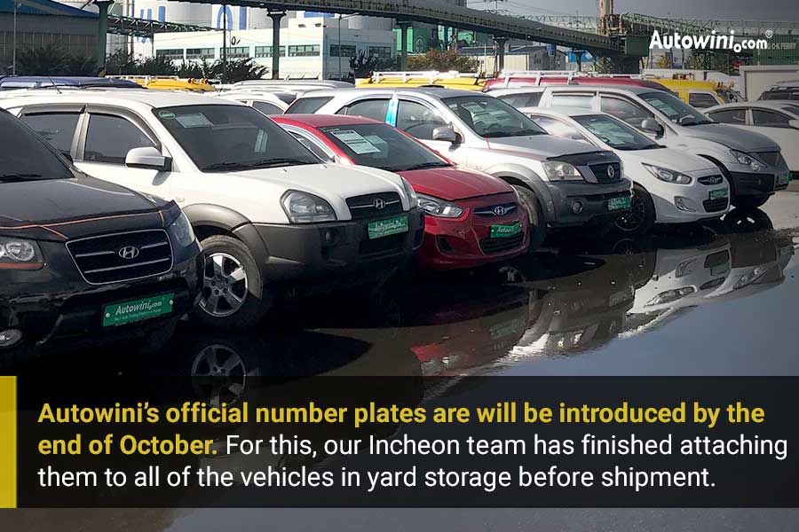 Autowini’s official number plates are will be introduced by the end of October. For this, our Incheon team has finished attaching them to all of the vehicles in yard storage before shipment.