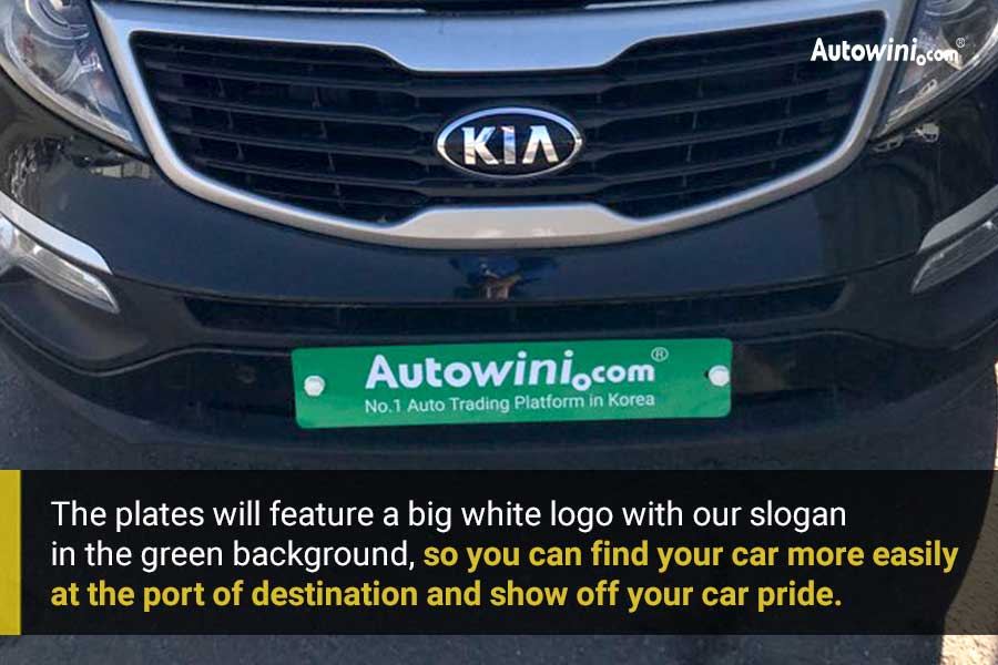 The plates will feature a big white logo with our slogan the green background, so you can find your car more easily at the port of destination and show off your car pride.