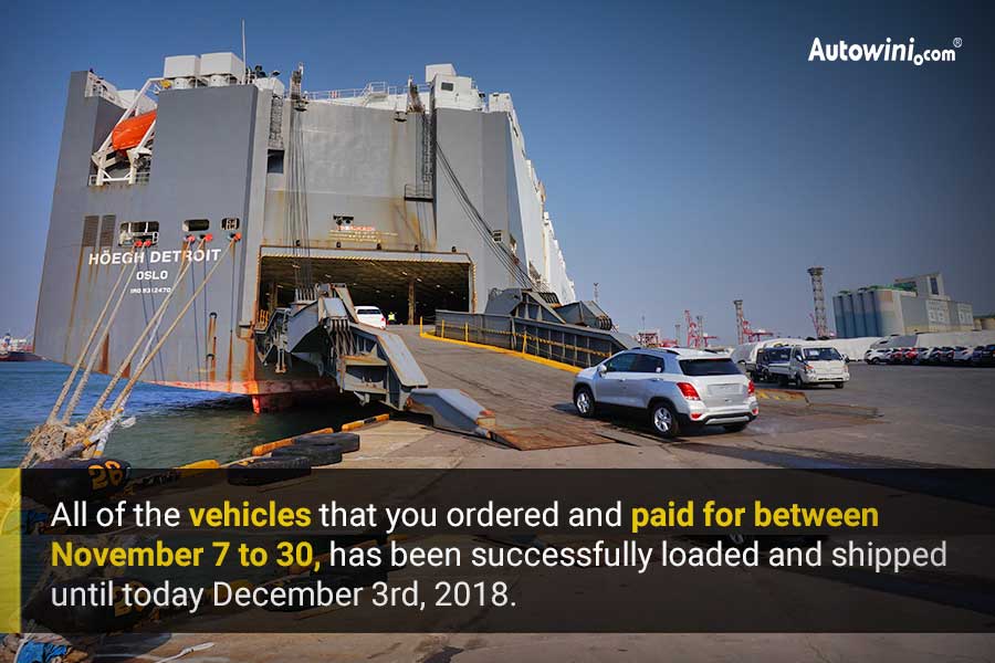 All of the vehicles that you ordered and paid between November 7 to 30 have successfully shipped by today.
