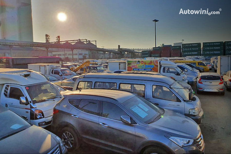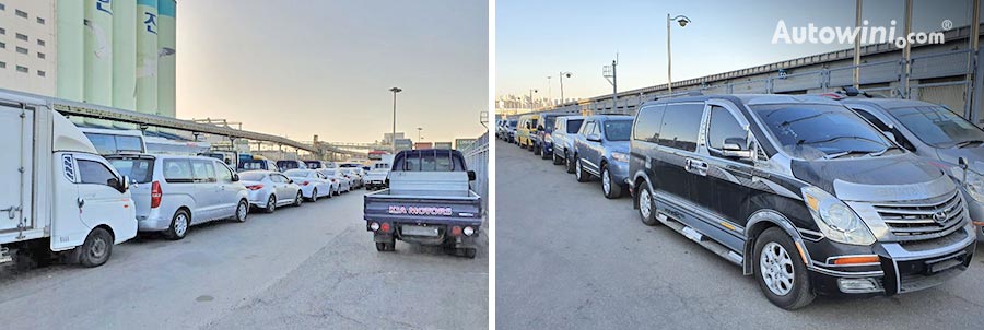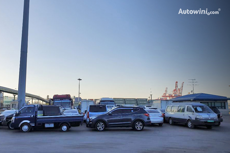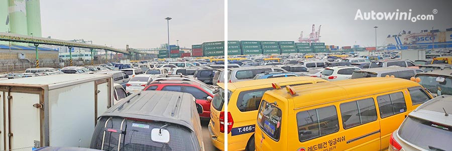 You know what? Our workday begins before your workday and ends after the sun goes down. This is our storage yard at the port of Incheon where all vehicles are kept before shipping.
