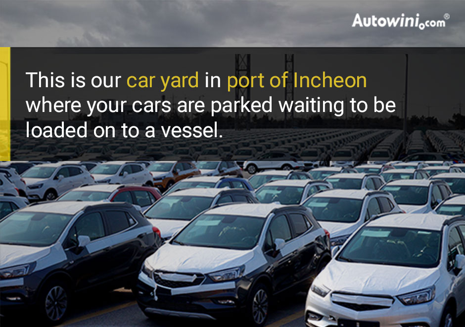 This is our car yard in port of Incheon where your cars are parked waiting to be loaded on to a vessel.