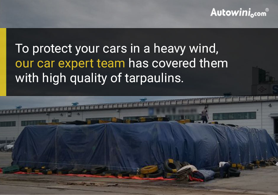 To protect your cars in a heavy wind, our car expert team has covered them with high quality of tarpaulins.